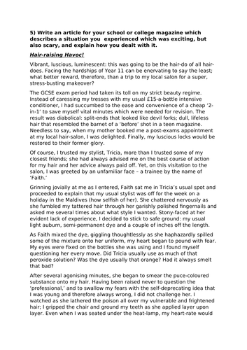 Paper 2 Question 5 Article Example : English Language Paper 2 Question 5 Letter Model Answer Gcse Creative Writing Questions Gcse English Creative Writing Plot Thanks A Million For Your Letter Less Frequent Use Of Huafa Ca : Listening introduction to the test and all 4 parts together.. Not sure how to write top level 9 answers for newspaper articles and website articles (including blogs!) for question 5 of your english language paper 2 gcse exam? Author's last and first name. This question is also a big kahuna question. Who should it feel like your talking to when your writing an article. Do you pay enough attention to organisation?